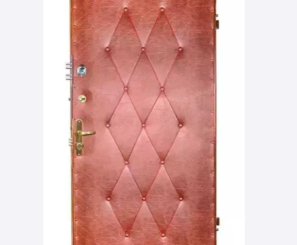 Многие не сомневаются, чем можно оббить входную дверь с внутренней стороны железную, выбирают дерматин или кожу. Это придает полотну дорого вида, улучшает интерьер коридора. Обычно используют дерматин ввиду его дешевизны, прочности и долговечности. Между основой и отделочным материалом располагают поролон. Его крепят на клей. Затем на полотно раскладывают дерматин. Края заворачивают и фиксируют специальными скобами.
