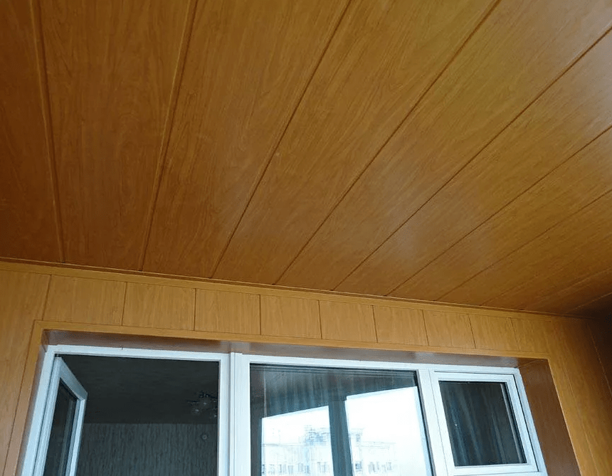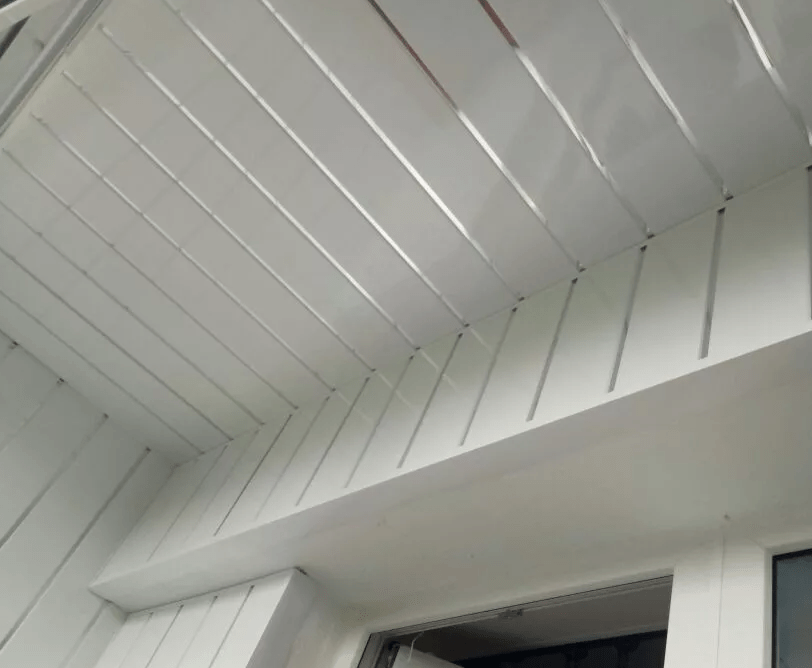 - Установка пластиковых панелей. Работать начинают с потолка. После него переходят на стены.