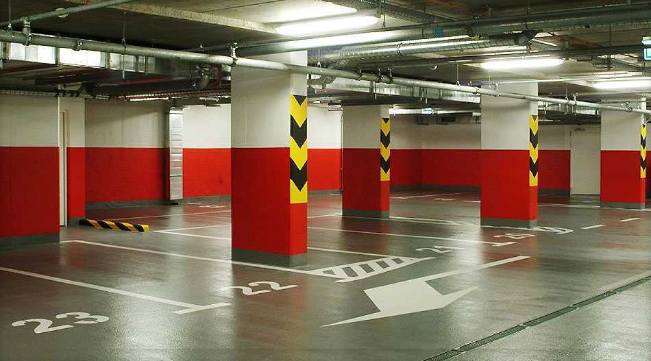 На паркингах в зависимости от условий эксплуатации могут применяться полимерные покрытия нескольких конструктивных вариантов. Для зон проезда может использоваться одна конструкция, для парковочных мест – вторая, а для пандусов – третья. На самых нагружаемых участках, а это пандусы и зоны проезда, оптимальными являются покрытия в шероховатом исполнении. Но любое полимерное покрытие рекомендуется упрочнять кварцевым песком с целью распределения нагрузки, исходящей от тяжелых автомобилей.