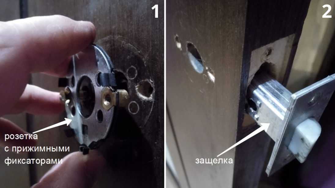 проще говоря, произвести демонтаж межкомнатных ручек с защелкой.