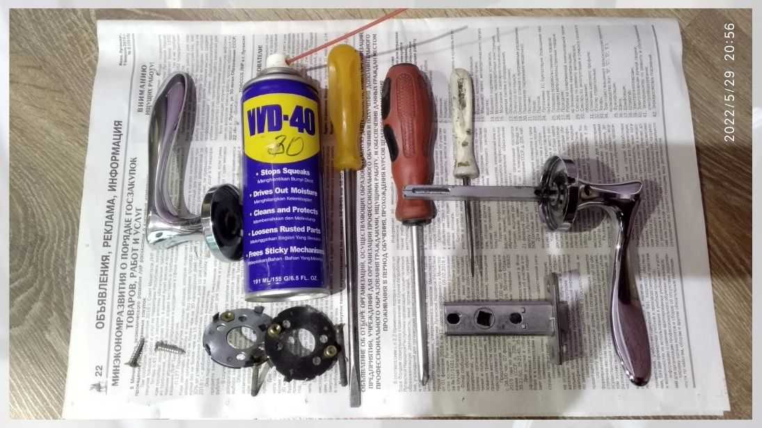 Естественно, с голыми руками на такое дело не пойдешь, нужен был инструмент для работы, чтобы снять дверные ручки межкомнатной двери с защелкой, .