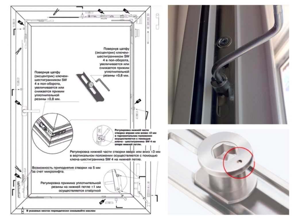 - Смещение элементов механизма. Именно по этой причине часто пластиковая дверь на балкон не закрывается. Их можно вернуть на место при помощи шестигранника — им надо затянуть или ослабить эксцентрики.