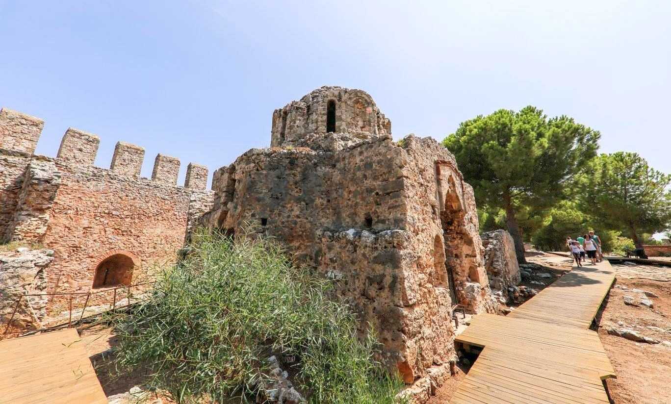 Крепость Аланьи была возведена на месте древних руин крепости Чораджесиум (в переводе звучит «скала»). В замке находилась зимняя резиденция султана Ала Ад-Дина Кей-Кубада I. Для строительных работы был выбран прочный раствор, поэтому даже в тех участках крепости, где разрушены кирпичи, раствор не изменил своих технических характеристик.