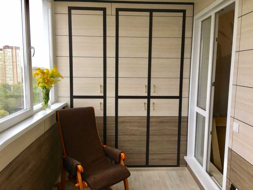 Если квартира маленькая, и вещи девать просто некуда, на балконе или лоджии устанавливают шкафы или полочки. Их разместить можно так, чтобы еще осталось место для кресла, или хотя бы для складного стула.
