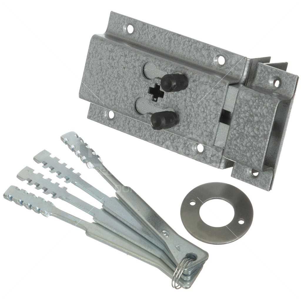 Очень часто их устанавливают на гаражные ворота. Крепление реечного замка для гаража происходит с внутренней стороны накладным способом; к металлическим дверям (воротам) болтами, к деревянным— при помощи саморезов. В жилом помещении он нередко используется как дополнительное запорное устройство.